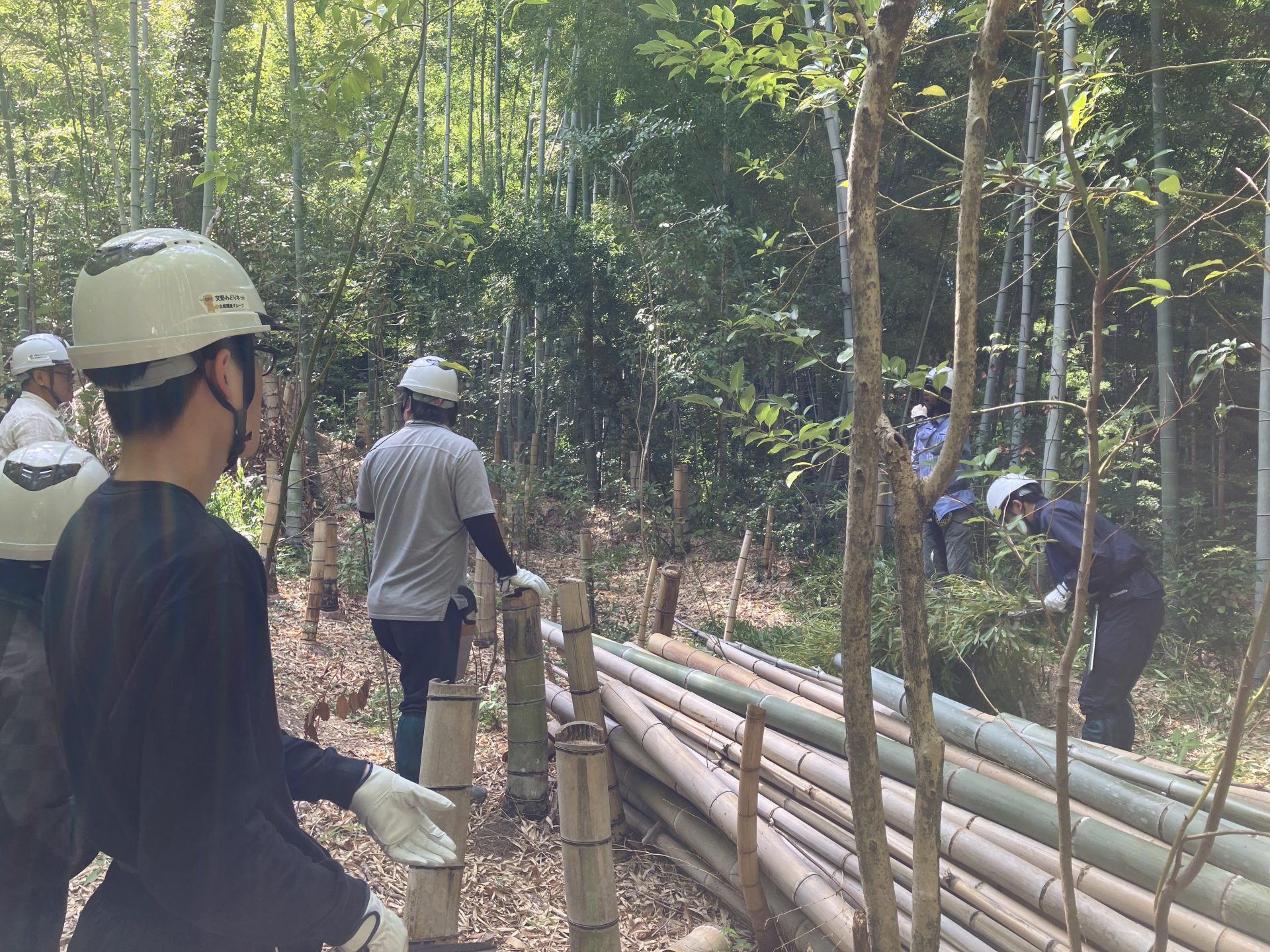 この活動は、地域のボランティア団体『みどりネット』の皆さまが中心となって進めているもので、今回も地域の方々と協力しながら、竹林の伐採や整備作業に取り組みました。